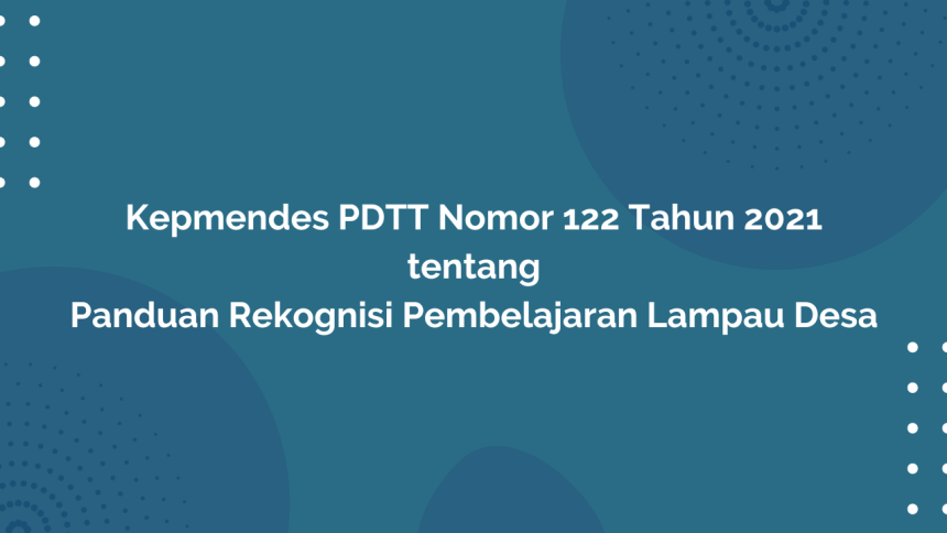 Kepmendes PDTT Nomor 122 Tahun 2021 Tentang Panduan Rekognisi Pembelajaran Lampau Desa merupakan hasil keputusan yang menyajikan kesempatan bagi kepala desa, perangkat desa, anggota badan permusyawaratan desa, pengelola badan usaha milik desa/badan usaha milik desa bersama, tenaga pendamping profesional, serta pegiat pemberdayaan masyarakat desa untuk menempuh pendidikan tinggi melalui rekognisi pembelajaran lampau desa, perlu menyusun panduan rekognisi pembelajaran lampau desa.