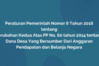 Peraturan Pemerintah Nomor 8 Tahun 2016 Tentang Perubahan Kedua Atas PP No. 60 tahun 2014 tentang Dana Desa Yang Bersumber Dari Anggaran Pendapatan dan Belanja Negara