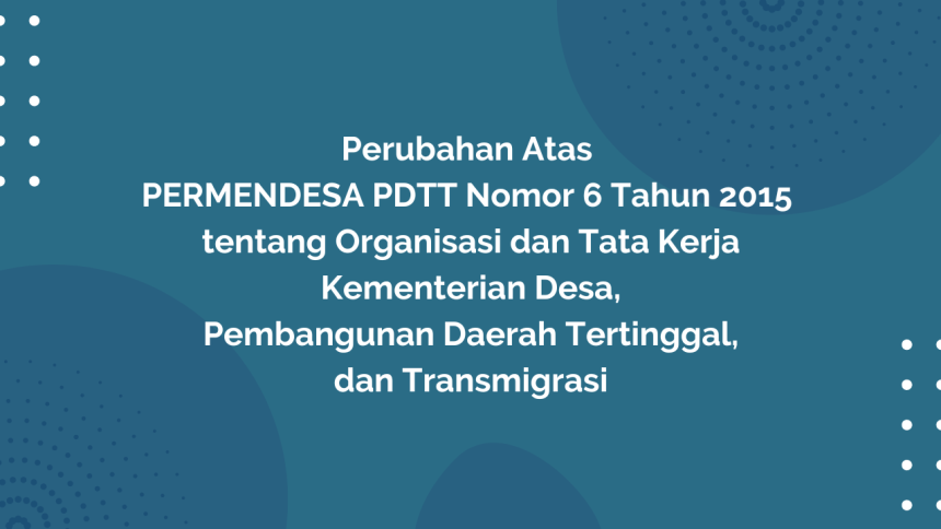 PERATURAN MENTERI DESA, PEMBANGUNAN DAERAH TERTINGGAL, DAN TRANSMIGRASI TENTANG PERUBAHAN ATAS PERATURAN MENTERI DESA, PEMBANGUNAN DAERAH TERTINGGAL, DAN TRANSMIGRASI NOMOR 6 TAHUN 2015 TENTANG ORGANISASI DAN TATA KERJA KEMENTERIAN DESA, PEMBANGUNAN DAERAH TERTINGGAL, DAN TRANSMIGRASI.