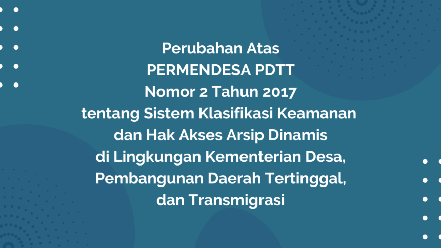 a. bahwa untuk melakukan penyesuaian terhadap ketentuan sistem klasifikasi keamanan dan hak akses arsip dinamis di lingkungan Kementerian Desa, Pembangunan Daerah Tertinggal, dan Transmigrasi, perlu mengubah Peraturan Menteri Desa, Pembangunan Daerah Tertinggal dan Transmigrasi Nomor 2 Tahun 2017 tentang Sistem Klasifikasi Keamanan dan Hak Akses Arsip Dinamis di Lingkungan Kementerian Desa, Pembangunan Daerah Tertinggal, dan Transmigrasi;