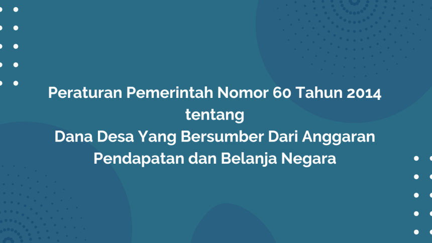 Peraturan Pemerintah Nomor 60 Tahun 2014 Tentang Dana Desa Yang Bersumber Dari Anggaran Pendapatan dan Belanja Negara merupakan salah satu sumber pendapatan Desa berasal dari alokasi Anggaran Pendapatan dan Belanja Negara. Kemudian alokasi Anggaran Pendapatan dan Belanja Negara kepada Desa perlu dilaksanakan secara transparan dan akuntabel dengan memperhatikan kemampuan Anggaran Pendapatan dan Belanja Negara. Terkait hal tersebut, hal ini agat memberikan kepastian hukum, dimana pengalokasian Dana Desa yang bersumber dari Anggaran Pendapatan dan Belanja Negara perlu diatur dalam peraturan pemerintah. Anggaran Pendapatan dan Belanja Negara, yang selanjutnya disingkat APBN, adalah rencana keuangan tahunan pemerintahan negara yang disetujui oleh Dewan Perwakilan Rakyat (DPR).
